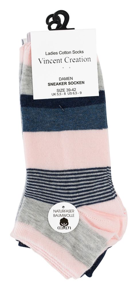 Dodaj boje i veselje svom svakodnevnom outfitu uz ženske stopalice GIRLY brenda Vincent Creation®. Ove moderne i udobne stopalice dolaze u pakiranju od 4 para, u razigranim kombinacijama točkica, prugica i pastelnih nijansi ružičaste, sive i plave.